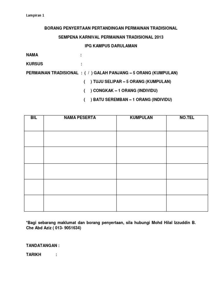 Borang Penyertaan Pertandingan Permainan Tradisional Pdf